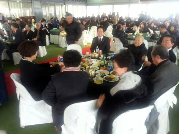 µÎ ¼Õ Àâ°í ¡°¾ÆÀ̰í ÃàÇÏ Çô¡±ÇÏ¸ç ¾ó±¼ ÃÄ´Ùº¸¸é ´ö´ãÀÌ ³¡ÀΰÍÀÌ ½Ã°ñ ÀλçÀε¥, À̳¯Àº µ¿³× ÀÌÀå´ÔÀ» ºñ·ÔÇÏ¿© ºÎ³àȸ, û³âȸ, Á¾Ä£È¸, Á¾Ä£´ëÇ¥, µ¿³× Á¶ÇÕÀåÀÌ °Ç³Ù ²É´Ù¹ß¸¸µµ ¹«·Á 10¿©°³¿¡ ´ÞÇØ ¹«¶Ò¶ÒÇÑ ÃÌ ÀÎ»ç »Ë ¼¼ Ä¡°ï ¼¼·ÃµÈ ȯ¿µ½ÄÀ̾ú´Ù.