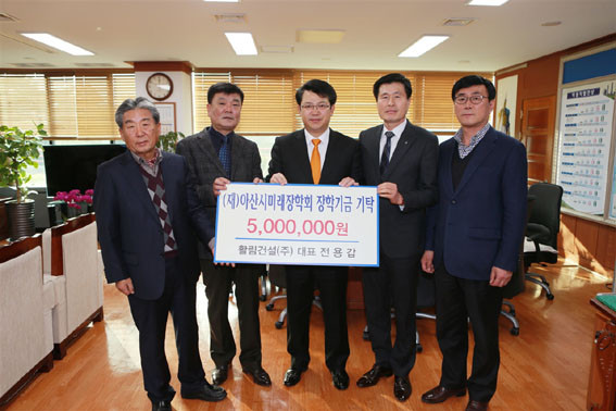 1¿ù 6ÀÏ È°¸²°Ç¼³(ÁÖ)(´ëÇ¥ Àü¿ë°©)Àº ¾Æ»ê½Ã¸¦ ¹æ¹®ÇØ ¾Æ»ê½Ã ÀÎÀçÀ°¼ºÀ» À§ÇØ »ç¿ëÇØ ´Þ¶ó¸ç (Àç)¾Æ»ê½Ã¹Ì·¡ÀåÇÐȸ(ÀÌ»çÀå È«½Â¿í)¿¡ ÀåÇбâ±Ý 500¸¸ ¿øÀ» ±âŹÇß´Ù.