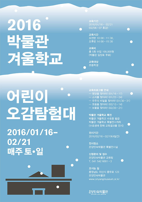 ±³À°ºñ´Â ÃÑ 5ȸ ¼ö¾÷¿¡ 10¸¸ ¿øÀ̸ç, ÀÚ¼¼ÇÑ ¹®ÀÇ´Â ¿Â¾ç¹Î¼Ó¹Ú¹°°ü ÀüÈ(041-542-6001~3), ȨÆäÀÌÁö(http://onyangmuseum.or.kr)¸¦ ÅëÇØ ÇÒ ¼ö ÀÖ´Ù.