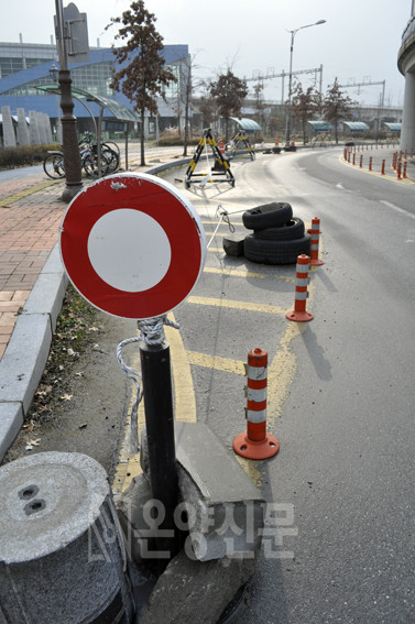 À̰°Àº ¾Æ»êÂÊ °ü¹®Àº ÃÖÃÊ ¼³°è¿Í´Â ´Þ¸® °í°¡µµ·Î°¡ ½Å¼³µÇ¸é¼ ±× ÇϺο¡ ´ëÇÑ ±¸Ã¼ÀûÀÎ Á¶¸í°ú µðÀÚÀÎÀ» °í·ÁÇÏÁö ¾Ê¾Æ¼ ¹ß»ý ÇÑ °ÍÀÌ´Ù¸é¼ Çϳª¸¸ º¸´Â ±Ù½Ã¾ÈÀû ¼³°è¸¦ ²¿Áý¾ú´Ù.