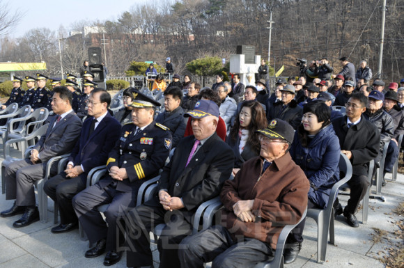 22ÀÏ, ½Åâ¸é À¾³»¸® °æÂû ÃæÈ¥Å¾¿¡¼ ¡®6.25 ÂüÀü°æÂû µ¿»ó Á¦¸·½Ä¡¯À» °®°í, ¼±¿ÀÇ ¼þ°íÇÑ Èñ»ý ¾Õ¿¡ Âü¼®ÀÚµéÀÌ °æÀǸ¦ Ç¥Çß´Ù.