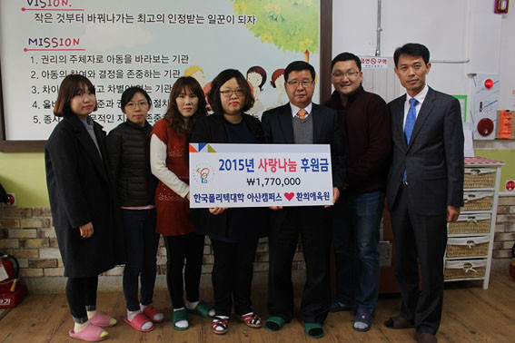 Çѱ¹Æú¸®ÅØ´ëÇÐ ¾Æ»êÄ·ÆÛ½º(ÇÐÀå À±±â¼³)´Â 12¿ù 22ÀÏ Áö¿ª ³» »çȸº¹Áö¹ýÀΠȯÈñ¾ÖÀ°¿øÀ» ¹æ¹®ÇØ ¿¬¸» ÈÄ¿ø±Ý Àü´Þ½ÄÀ» °¡Á³´Ù.