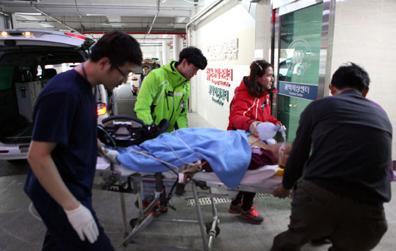 ±è ±³¼ö¿Í ÀÀ±Þ±¸Á¶»ç°¡ ž½ÂÇÑ ´ÚÅÍÇï±â´Â 2½Ã37ºÐ¿¡ ÀÌ·úÇØ 20ºÐ ¸¸¿¡ ȯÀÚÀΰèÁ¡ÀÎ ¼»êÁ¾ÇտÀå¿¡ µµÂøÇß´Ù. ¼»êÀÇ·á¿ø ÀÇ·áÁøÀ¸·ÎºÎÅÍ È¯ÀÚ¸¦ Àΰè¹Þ°í ÇöÀå¿¡¼ Ãß°¡·Î ÀÀ±Þóġ¸¦ ÇÑ ÈÄ ´Ü±¹´ëº´¿ø ±Ç¿ª¿Ü»ó¼¾ÅÍ·Î ÈļÛÇß´Ù.
