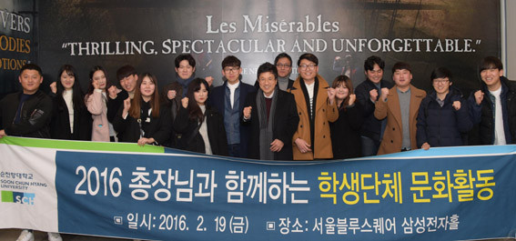 Áö³ 2¿ù 19ÀÏ ¿ÀÈÄ¿¡ ÁøÇàµÈ ¡®2016 ÃÑÀå-Çлý´ÜüÀå ¹®ÈȰµ¿¡¯ Çà»ç¿¡´Â ¼±³ÀÏ ÃÑÀå°ú Á¶¼±¿Õ ÃÑÇлýȸÀå(û¼Ò³â±³À°»ó´ãÇаú, 4Çгâ)À» ºñ·ÔÇÑ 20¿©¸íÀÇ Çлý´ÜüÀå, À̰æÈ£ ÇлýóÀå, ¿øÁ¾¿ø ´ë¿ÜÇù·Â½ÇÀåÀÌ Âü¼®ÇÑ °¡¿îµ¥ ¼¿ïƯº°½Ã ¿ë»ê±¸ ÀÌÅ¿ø¿¡ À§Ä¡ÇÑ ¾Æ¿ô¹é ½ºÅ×ÀÌÅ©ÇϿ콺¿¡¼ ½Ä»ç¸¦ °âÇÑ °£´ãȸ¸¦ °®°í ¹ÂÁöÄà ·¹¹ÌÁ¦¶óºíÀ» ÇÔ²² °ü¶÷ÇÏ´Â ¼ø¼·Î À̾îÁ³´Ù.