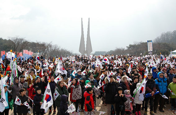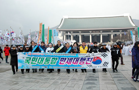 À̳¯ ´ëÇüűرâ¿Í ±¹¹ÎÅëÇÕ¸ðÇü¿Â÷¸¦ ¾Õ¼¼¿î Á¶¼±¹ÎÁ·´ëÇ¥ 33ÀÎÀÇ ¸ð½ÀÀ» ÇÑ Á¾±³, »çȸ, ´Üü ´ëÇ¥¿Í ½Ã¹Î°ú Çлýµî Âü°¡ÀÚµéÀÌ Å±ر⠹°°áÀ» ÀÌ·ç¸ç ¸¸¼¼ÀçÇö°ú ÇÔ²² ¸¸¼¼ÇÔ¼ºÀ» ÈûÂ÷°Ô ¿ÜÄ¡¸ç ´ç½Ã ¼ö¸¹Àº °í³°ú ¿ª°æ¿¡µµ ±¼ÇÏÁö ¾Ê¾Ò´ø ¼±¿µéÀÇ ¼þ°íÇÑ ³ª¶ó»ç¶û Á¤½ÅÀ» µÇ»õ±â°í Èñ¸ÁÂù ÀÇÁö¸¦ ´ÙÁø´Ù.