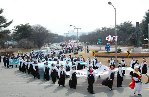 ÀÌ¾î ¿ÀÀü 10½Ã30ºÐºÎÅÍ´Â ÃæÃ»³²µµ´ëÇ¥ ¾î¸°ÀÌűǵµ½Ã¹ü´ÜÀÎ ¿ëÀδëMTA¼ö¸®¿Âűǵµ ½Ã¹ü´ÜÀÇ Å±ÇüÁ¶ ½Ã¹ü°ø¿¬°ú ÇÔ²² ´ëÇÑÀû½ÊÀÚ»çõ¾ÈÁö±¸ÇùÀÇȸ(ȸÀå ±Çó¿ø), õ¾Èµ¿³²±¸ÀÚÀ²¹æ¹ü¿¬ÇÕ´ë(´ëÀå ÀÓ»ó´ö), ³ª¶ó»ç¶ûºÀ»ç´Ü(´ÜÀå ÀÓ¿µ¹¬), (»ç)ÇѹÎÁ·ÆòÈÆ÷·³(ÀÌ»çÀå ÃÖ¹®±â)ÀÇ °øµ¿ÁÖ°üÀ¸·Î 3¡¤1Á¤½Å°è½ÂÀ» À§ÇÑ ³ª¶ó»ç¶ûÇѸ¶À½°È±â´ëȸ(±¹¹Î´ëÅëÇÕ ¸¸¼¼´ëÇàÁø)°¡ µ¶¸³±â³ä°ü °Ü·¹ÀÇÅ«¸¶´ç °ú µ¶¸³±â³ä°ü ¾Õ ¸ñõ³ªµé¸ñ 4.3Km ±¸°£¿¡¼ ¿¸°´Ù.