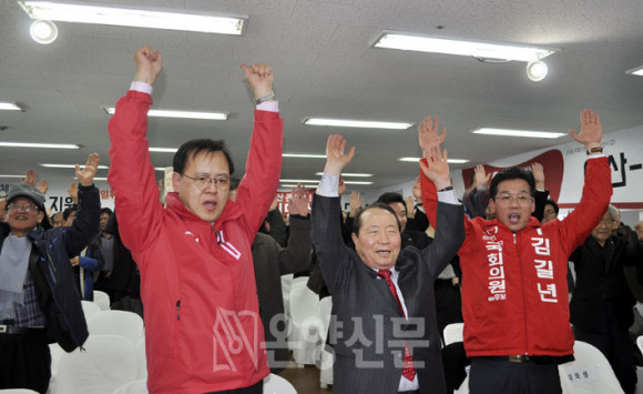 À̳¯ °³¼Ò½Ä¿¡´Â ±èÁ¦½Ä(¼»ê, žÈ) ±¹È¸ÀÇ¿ø, È«¹®Ç¥(È«¼º, ¿¹»ê) ±¹È¸ÀÇ¿ø, ½Å°æ¸²(ºñ·Ê) ±¹È¸ÀÇ¿ø, ±èÀÀ±Ô µµÀÇ¿ø, Àå±â½Â µµÀÇ¿ø, À̱â¾Ö ½ÃÀÇ¿ø, À¯¸í±ÙÀÇ¿ø, ½É»óº¹ÀÇ¿ø, ÇöÀÎ¹è ½ÃÀÇ¿ø, ÀÌ¿øÃ¢・Àü¿µÁØ Àü µµÀÇ¿ø, Á¶±âÇà・±èÁعè・Á¤°Å¹¬・ÀÌ±â¿ø・À̹ÎÇü Àü ÀÇȸ ÀÇÀåÀ» ºñ·ÔÇÑ Àü・ÇöÁ÷ ÀÇ¿øµéÀÌ Âü¼®ÇÏ¿© 3¼±À» À§ÇØ Ã¹ ¹ßÀ» ³»µó´Â À̸í¼ö ¿¹ºñÈĺ¸ »ç¹«¼Ò °³¼Ò½ÄÀ» ÇÔ²² Çß´Ù.