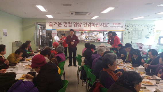 ÇÑÆí, ·Ôµ¥¸¶Æ® ¾Æ»êÅ͹̳ÎÁ¡Àº Áö³ 2013³â12¿ù ¾÷¹«Çù¾àÀÌÈÄ Áö¼ÓÀûÀ¸·Î ¼³, Ãß¼® ¸íÀý ¶§ ¸¶´Ù °ü³» µ¶°Å³ëÀÎ 30¸í¿¡ ´ëÇØ¼µµ Á¡½É ½Ä»ç ¹× ¼±¹° µîÀ» Áö¿øÇØ ¿À°í ÀÖÀ¸¸ç ¿Â¾ç3µ¿ ÇູŰ¿òÃßÁø´Ü°úµµ ±ä¹ÐÇÑ Çù·ÂÀÌ ÀÌ·ç¾îÁö°í ÀÖ´Ù.
