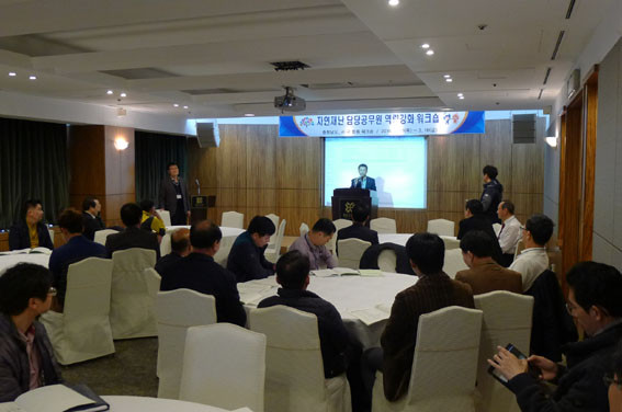 À̹ø ¿öÅ©¼ó¿¡¼´Â Àç³¾÷¹«ÀÇ ÀÌÇØµµ Á¦°í¿Í ½Ç¹«ÃßÁøÀÇ Àü¹®¼ºÀ» °ÈÇϱâ À§ÇØ ±¹°¡¹Î¹æÀ§Àç³¾ÈÀü±³À°¿ø ±èÀ±Èñ ±³¼ö¸¦ ÃʺùÇØ ¡®Àç³°ü¸®Ã¼°è¡¯¸¦ ÁÖÁ¦·Î Àü¹®±³À° ½Ç½ÃÇß´Ù.