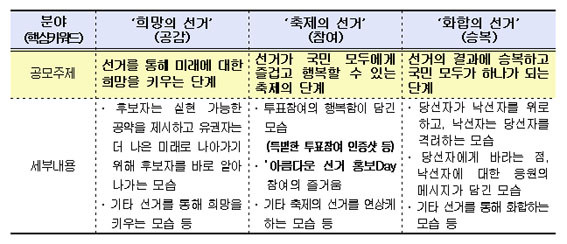 ´ç¼±ÀÛÀº 5¿ù 2ÀÏ °ø¸ðÀü ȨÆäÀÌÁö ¹× ¼±°Å°ü¸®À§¿øÈ¸ ȨÆäÀÌÁö¸¦ ÅëÇØ ¹ßÇ¥µÉ ¿¹Á¤ÀÌ´Ù.