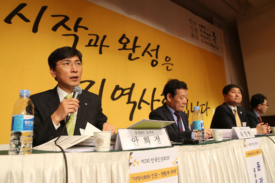 °³È¸½Ä¿¡ À̾ ¾ÈÈñÁ¤ Ãæ³²Áö»ç¿Í À±ÀåÇö ±¤ÁÖ½ÃÀå, ±è¿µ¹è ¼¿ï ¼ººÏ±¸Ã»Àå, ÇϽÂâ ¼¿ï½Ã Á¤¹«ºÎÁö»ç°¡ Âü¿©ÇÑ °¡¿îµ¥ ¡®Áö¿ª»çȸ/µµ½Ã¿Í Àαǡ¯À» ÁÖÁ¦·Î ÁöÀÚüÀå°úÀÇ ´ëȰ¡ ÁøÇàµÆ´Ù.