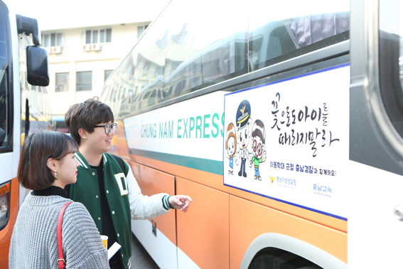 ÀÌ Ãæ³²°í¼Ó ÃÑ 231´ë ¹ö½º Áß 30%¿¡ ´ÞÇÏ´Â 80´ëÀÇ ¹ö½º¿¡ Æ÷½ºÅ͸¦ ºÎÂøÇØ È«º¸ÇÏ°Ô µÇ¸ç, ¡®²ÉÀ¸·Îµµ ¾ÆÀ̸¦ ¶§¸®Áö ¸»¶ó¡¯´Â ¾Æµ¿ÇÐ´ë ±ÙÀýÀ» ¾Ë¸®´Â ¹®±¸°¡ Æ÷ÇÔµÈ Æ÷½ºÅÍ 1Á¡, ¡®¾Æµ¿°ú ÇлýÀÌ °Ç°Çϰí ÇູÇÏ°Ô ÀÚ¶ö ¼ö ÀÖ´Â ´ëÇѹα¹ Ãæ³²°æÂûÀÌ ¸¸µé¾î ³ª°¡°Ú½À´Ï´Ù¡¯¶ó´Â Çб³Æø·Â ±ÙÀý ¹®±¸¸¦ ´ãÀº Æ÷½ºÅÍ 1Á¡ µî ÃÑ 2Á¡ÀÇ Æ÷½ºÅͰ¡ ºÎÂøµÆ´Ù.