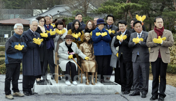 ÇÑÆí, ÆòÈÀÇ ¼Ò³à»óÀº ÀϺ»±º À§¾ÈºÎ ÇÇÇØÀÚÀÇ ¸í¿¹¿Í ÀαÇÀ» ȸº¹ÇÏ°í ¹Ì·¡¼¼´ë¿¡°Ô ¿Ã¹Ù¸¥ ¿ª»ç °¡Ä¡°üÀ» ½É¾îÁÖ±â À§ÇØ 2011³â 12¿ù 14ÀÏ À§¾ÈºÎ ¹®Á¦ÇذáÀ» Ã˱¸ÇÏ´Â 1õȸ Â÷ ¼ö¿äÁýȸ ¶§ ¼¿ï ÀϺ»´ë»ç°ü ¾Õ¿¡ ¼¼¿öÁ³¾úÀ¸¸ç ÀÌÈÄ ±¸¹Ì, ºÎ»ê, ÀÇÁ¤ºÎ, ¼º³² µî Àü±¹ 40¿© °÷¿¡ °Ç¸³µÆ´Ù.