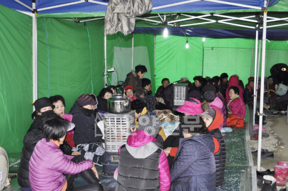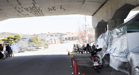 ÇöÀç Àα٠4°³¸¶À» ÁֹεéÀº 4¿ù 1ÀϱîÁö Áýȸ ½Å°í¸¦ Çϰí, Áö³ 7ÀÏ(¿ù¿äÀÏ)ºÎÅÍ ¸ÅÀÏ 200¿©¸íÀÇ ÁֹεéÀÌ ´ë·úÁ¦°ü ¾Æ»ê°øÀå ¾Õ 39¹ø±¹µµ °í°¡ ¹Ø °øÅÍ¿¡ õ¸·À» ¼³Ä¡Çϰí 10³âÀü¿¡ ÇÕÀÇÇÑ °¡½º½Ã¼³ ÀÌÀüÀ» Ã˱¸ÇÏ´Â Áýȸ¸¦ ¿°í ÀÖ´Ù.