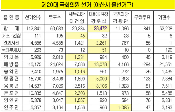 ¶ÇÇÑ ¾Æ»ê½Ã¡®À»¡¯¼±°Å±¸ÀÇ °ÈÆ½Ä È帴 2¸¸ 8õ472Ç¥46.96%)¸¦ ȹµæÇØ 2¸¸ 234Ç¥(33.37%)ÀÇ »õ´©¸®´ç À̰ǿµ Èĺ¸, 1¸¸ 1õ86Ç¥(18.28%)ÀÇ ±¹¹ÎÀÇ´çÀÇ ±è±¤¸¸ È常¦ ¿©À¯ÀÖ°Ô µûµ¹¸®°í ´ç¼±À» È®Á¤Áö¾ú´Ù.