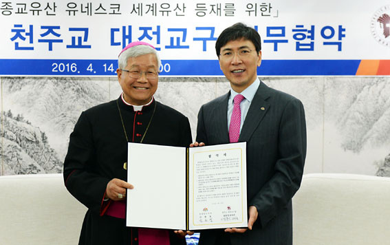 ¾ÈÈñÁ¤ Áö»ç¿Í À¯Èï½Ä ¶óÀڷΠõÁÖ±³ ´ëÀü±³±¸ÀåÀº 4¿ù 14ÀÏ µµÃ» Á¢°ß½Ç¿¡¼ ¡®Ãæ³² õÁÖ±³ Á¾±³À¯»ê ¼¼°èÀ¯»ê µîÀ縦 À§ÇÑ ¾÷¹«Çù¾à¡¯À» ü°áÇß´Ù.