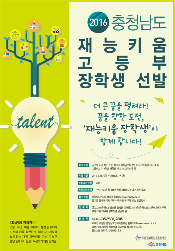 ¡®Àç´ÉŰ¿ò ÀåÇбݡ¯Àº Àι®¡¤ÀÚ¿¬¡¤¿¹¼ú¡¤¹Ìµð¾î¡¤³ó¾÷ µî ºÐ¾ß¿¡ ÀÚ½ÅÀÇ ²ÞÀ» ½ÇÇöÇϱâ À§ÇØ ÀÚ±â°è¹ß¿¡ ³ë·ÂÇÏ´Â °íµîÇлýÀ» Áö¼Ó °¡´ÉÇÑ Áö¿ªÀÎÀç·Î¼ ¹ß±¼¡¤À°¼º¡¤Áö¿øÇϱâ À§ÇÑ ÀåÇбÝÀ¸·Î ¸¹Àº °íµîÇлýÀÇ °ü½ÉÀ» ¹Þ°í ÀÖ´Ù.