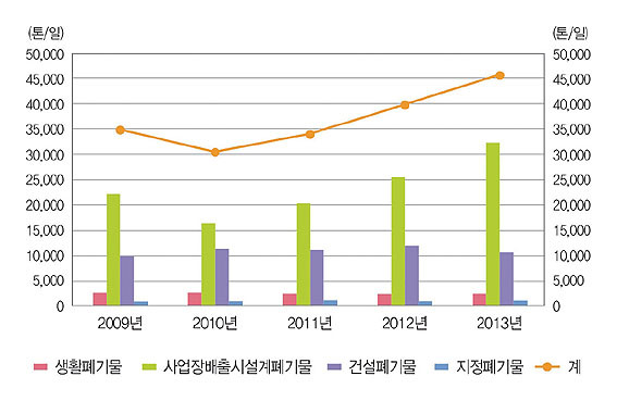 2013³â ÇöÀç Ãæ³²ÀÇ Àüü Æó±â¹° ¹ß»ý·®Àº ÇÏ·ç¿¡ ¾à 4¸¸ 5õ585Åæ, ÀÌÁß »ç¾÷Àå Æó±â¹°Àº ¾à3¸¸ 1õ500ÅæÀ¸·Î ÀüüÀÇ 71%¸¦ Â÷ÁöÇϰí ÀÖ´Ù.