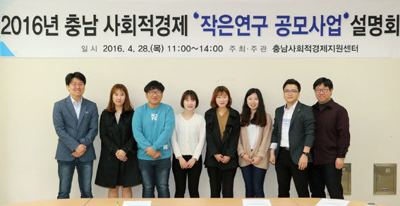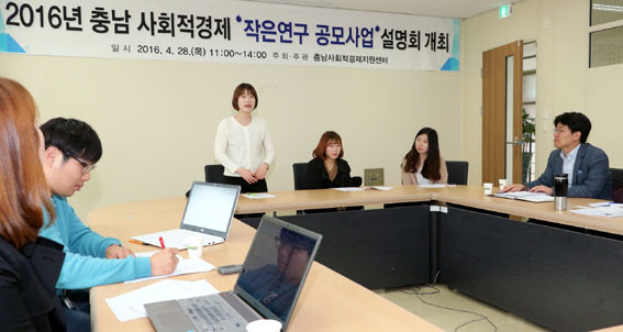 ÇÑÆí, Ãæ³²»çȸÀû°æÁ¦Áö¿ø¼¾ÅÍ´Â 28ÀÏ À̹ø °ø¸ð»ç¾÷¿¡ ÃÖÁ¾ ¼±Á¤µÈ 3ÆÀÀ» ÃÊÃ»ÇØ ¿¬±¸¹æ¹ý ¹× Áö¿ø±Ý »ç¿ë µî¿¡ °üÇÑ ¼³¸íȸ¸¦ °¡Á³´Ù.