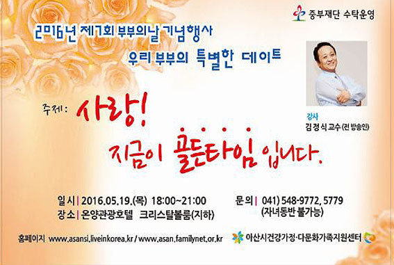 À̹ø ºÎºÎÀÇ ³¯ ±â³äÇà»ç´Â ¾Æ»ê½Ã°Ç°°¡Á¤¡¤´Ù¹®È°¡Á·Áö¿ø¼¾ÅÍ(041-548-9772, 5779)·Î ¹®ÀÇ ÈÄ ½Åû¼¸¦ Á¦Ãâ(¹æ¹®,ÆÑ½º,À̸ÞÀÏ)Çϸé Âü¿© °¡´ÉÇÏ´Ù. ½Åû¾ç½ÄÀº º» ¼¾ÅÍ È¨ÆäÀÌÁö¿¡¼ ´Ù¿î ¹ÞÀ» ¼ö ÀÖÀ¸¸ç, Àڳൿ¹ÝÀº ºÒ°¡´ÉÇÏ´Ù.