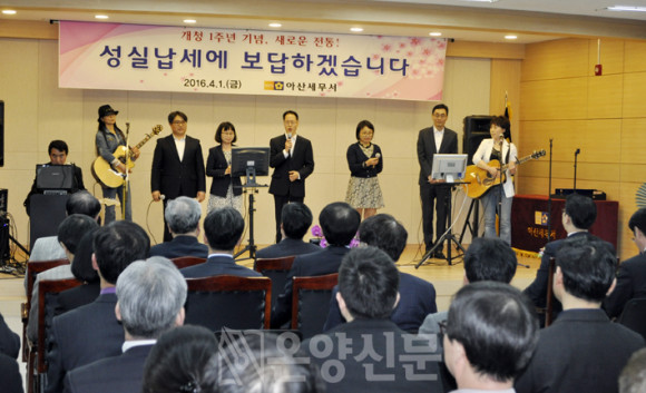 ¾Æ»ê¼¼¹«¼ 1Áֳ⠱â³ä½Ä¿¡¼´Â ¾î¿ï¸² Åë±âŸ µ¿È£È¸ÀÇ ½ÄÀü°ø¿¬°ú, ¼¼¹«¼ Áßâ´Ü °ø¿¬,°³Ã» 1Áֳ⠱â³ä µ¿¿µ»ó »ó¿µ, °¨»çÆÐ ¼ö¿©, ÀÌ´ÞÀÇ ¾Æ»êÀÎ ¼±Á¤, ¶±ÄÉÀÍ Àý´ÜÀ¸·Î Á÷¿øµéÀÇ Àå±â¸¦ »Ë³»¸ç, °³Ã» 1ÁÖ³âÀ» ÀÚÃàÇß´Ù.