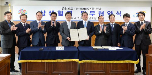 µµ´Â 4¿ù 7ÀÏ µµÃ» »óȲ½Ç¿¡¼ ¾ÈÈñÁ¤ Ãæ³²Áö»ç¿Í ÃÖ°èÀ± K-water »çÀåÀÌ Âü¼®ÇÑ °¡¿îµ¥ ¡®¹° ºÐ¾ß »ó»ýÇù·ÂÀ» À§ÇÑ ¾÷¹«Çù¾à¡¯À» ü°áÇß´Ù°í ¹àÇû´Ù.