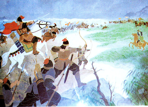ÀÌ ÀüÅõÀÇ °æ°ú¿¡ ´ëÇØ ¡®°í·Á»ç¡¯¿¡¼´Â °íÁ¾¼¼°¡ 23³â 9¿ù¿¡ ¡°9¿ù 3ÀÏ ¸ù°íº´ÀÌ ¿Â¼ö±ºÀ» Æ÷À§ÇϹǷΠ±º¸® Çö·Á µîÀÌ ¹®À» ¿°í ³ª°¡ ½Î¿ö Å©°Ô À̰å´Ù. (ÀÌ ½Î¿ò¿¡¼) 2±ÞÀ» Âü¼öÇß°í ½Ã¼®(ãÅà´)¿¡ ¸Â¾Æ Á×Àº ÀÚ°¡ 200¿© ÀÎÀ̾úÀ¸¸ç ³ëȹÇÑ ¹«±âµµ ½ÉÈ÷ ¸¹¾Ò´Ù. ¿Â¼ö±ºÀÇ ¼ºÈ²½ÅÀÌ Àº¹ÐÈ÷ µµ¿î °øÀÌ ÀÖ´ÙÇÏ¿© ¿ÕÀÌ ½ÅÈ£(ãêûÜ)¸¦ ´õÇϰí Çö·Á¸¦ ±ºÀÇ È£Àå(ûÂíþ)À¸·Î »ï¾Ò´Ù¡±°í Àû¾ú´Ù.