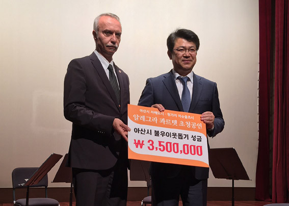 ¹Ì½´ÄÝÃ÷½Ã ´ëÇ¥´Ü°ú ÇÔ²² ¾Æ»ê½Ã¸¦ ¹æ¹®ÇÑ ¾Ë·¹±×¶ó Ä⸣ÅÝÀº 5¿ù 26ÀÏ ¼±¹®´ë ¿øÈ°ü ¾ÆÆ®È¦, 27ÀÏ¿¡´Â ¾Æ»ê½Ãû ½Ã¹ÎȦÀÇ °ø¿¬À» ÅëÇØ ½Ã¹Îµé¿¡°Ô ¼öÁØ ³ôÀº Çë°¡¸® À½¾ÇÀ» ¼±»çÇß´Ù.