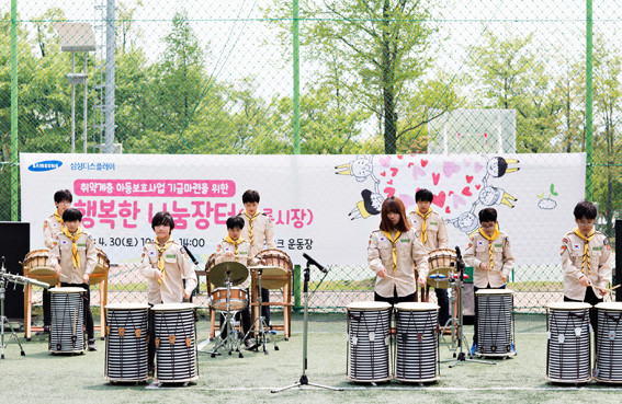 »ï¼ºµð½ºÇ÷¹ÀÌ´Â Áö³ 4¿ù 30ÀÏ ¾Æ»ê½Ã ÅÁÁ¤¸éÀÇ È¸»çüÀ°°ø¿ø¿¡¼ Á÷¿ø°ú °¡Á·, Áö¿ª ÁֹΠµî 1500¿©¸íÀÌ Âü¼®ÇÑ °¡¿îµ¥ ¡®ÇູÇÑ ³ª´® ÀåÅÍ(º·è½ÃÀå)¡¯¸¦¿¾ú´Ù.