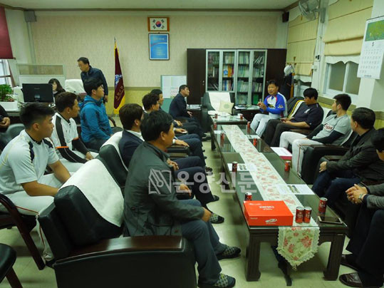 ÀÌ¾î ½Ç³»¾ß±¸ÀåÀ¸·Î À̵¿ÇØ ¼±¼öµéÀ» °Ý·ÁÇϰí ÈÆ·Ã»óȲÀ» üũÇÏ¸ç ¼±¼öµé¿¡°Ô ÀÏ´ëÀÏ Áöµµ¸¦ Çϱ⵵ Çß´Ù. ÀÌ °¨µ¶Àº ´ë½ºÅ¸ ´äÁö ¾ÊÀº ¼ÒÅ»ÇÔÀ¸·Î ¾î¸° ¼±¼öµéÀ» ÀÏÀÏÀÌ ¾È¾ÆÁÖ´Â °ÍÀº ¹°·Ð, ÀϰżöÀÏÅõÁ·¿¡ ¹Ú¼ö¿Í ÇÏÀÌÆÄÀ̺ê·Î ±â¸¦ ºÏµ¸¾ÆÁÖ´Â µî ½ÃÁ¾Àϰü ȱâ¾Ö¾ÖÇÏ°Ô ¾î¸° ¼±¼öµéÀ» ´Ùµ¶¿´´Ù.