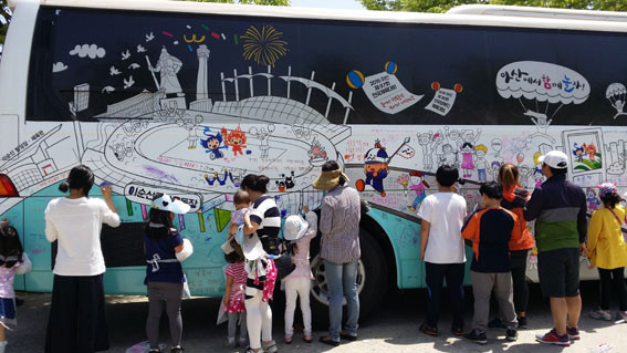¹ö½º¿¡ ±×·ÁÁø ¹Ø±×¸²Àº üÀü¿¡ Âü¿©ÇØ Áñ°Ì°Ô Áñ±â´Â ¾Æ»ê½Ã¹ÎÀÇ ¸ð½ÀÀ¸·Î Çà»ç¿¡ Âü¿©ÇÑ ¾ÆÀ̵é°ú °¡Á·µéÀÌ ±×¸²¿¡ »öÀ» Ä¥ÇØ ¿Ï¼ºÇÏµí ±×¸²ÀÇ ¸ð½Àó·³ ÇÔ²² Áñ±â´Â üÀüÀÌ µÇÀÚ´Â Àǹ̿¡¼ ±âȹµÆ´Ù.