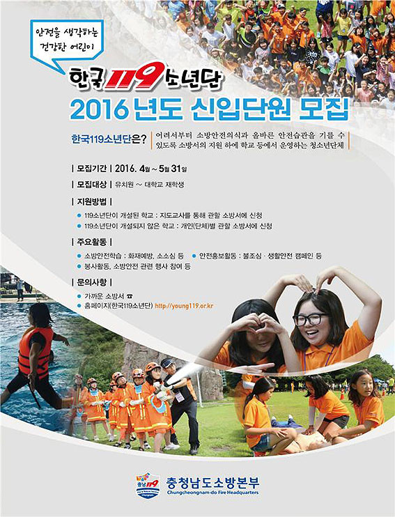 ¸ðÁý´ë»óÀº À¯Ä¡¿ø(¾î¸°ÀÌÁý)¡¤ÃÊ¡¤Áß¡¤°í¡¤´ëÇлýÀ¸·Î Çб³(ÇбÞ)´ÜÀ§ ¹× ´Üü·Î °¡ÀÔÀÌ °¡´ÉÇϸç Çѱ¹119¼Ò³â´ÜÀ¸·Î ¼±Á¤µÈ ´Ü¿øÀº 6¿ù Áß ÀÔ´Ü½Ä ÈÄ ¼Ò¹æ°ü Á÷¾÷üÇè±³½Ç, 119¾ÈÀü´º½º °æÁø´ëȸ, ¼Ò¹æµ¿¿ä °æ¿¬´ëȸ µî ´Ù¾çÇÑ Çà»ç Âü¿© ±âȸ°¡ ÁÖ¾îÁø´Ù.