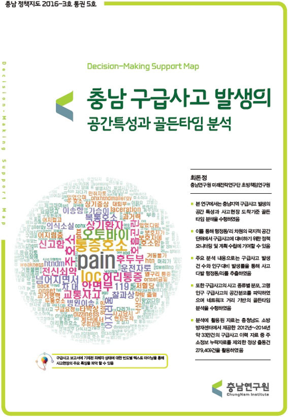 ÇÑÆí Ãæ³²Á¤Ã¥Áöµµ´Â Ãæ³²¿¬±¸¿øÀÌ ¸Å¿ù ¹ß°£ÇÏ´Â ÁöµµÇüÅÂÀÇ Á¤Ã¥Á¤º¸Áö·Î¼, ´Ù¾çÇÑ Çö¾È°úÁ¦¿¡ ´ëÇÑ °ø°£Á¤º¸ ±â¹ÝÀÇ Áö¸®Àû ÇÁ·ÎÆÄÀϸµÀ» ÅëÇØ µµ³» Á¤Ã¥Çö¾È ¹ß±¼°ú Á¤Ã¥ÀÇ»ç°áÁ¤À» À§ÇÑ ±âÃÊÀÚ·á·Î Ȱ¿ëµÇ°í ÀÖ´Ù.
