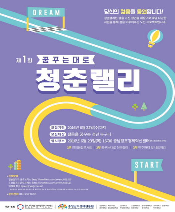 ¡®2016 Ãæ³²Ã»³ââ¾÷Æ÷·³¡¯Àº ¡®´ç½ÅÀÇ ÀþÀ½À» ÀÀ¿øÇÕ´Ï´Ù¡¯¸¦ ÁÖÁ¦·Î ÇÏ¿© µµ³» ´ëÇлý°ú ¿¹ºñ â¾÷ÀÚ ¹× µµÀüÀ» ¿øÇϴ û³âµéÀ» ´ë»óÀ¸·Î ¸Å´Þ ´Ù¾çÇÑ Áö¿øÀ» ÅëÇØ ²ÞÀ» ÀÌ·ç¾îÁÖ´Â µµÀü ¼ºÃë ÇÁ·ÎÁ§Æ®¸¦ ÁøÇàÇÑ´Ù.