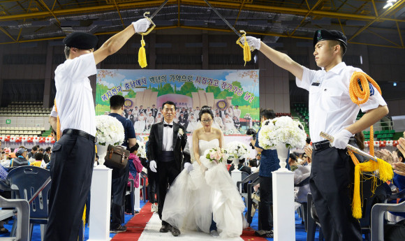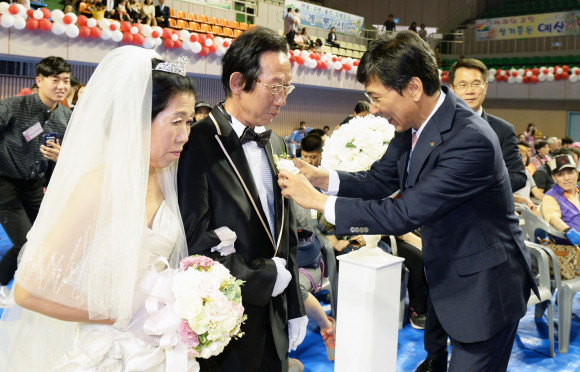 ÇÕµ¿°áÈ¥½ÄÀº ½Å¶û¡¤½ÅºÎ ÀÔÀå, °¨»çÆÐ Àü´Þ, È¥Àμ¾à µîÀÇ ¼øÀ¸·Î ÁøÇàµÆÀ¸¸ç, ¾È Áö»ç´Â ºÎºÎ¿¡°Ô ÀÏÀÏÀÌ ²ÉÀ» ´Þ¾ÆÁÖ°í ±â³äÃÔ¿µÀ» Çϸç ÃàÇÏÇß´Ù.