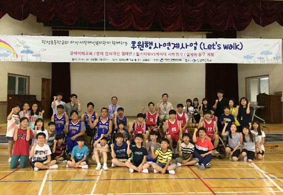 ¾Æ»ê½ÃÀå¾ÖÀκ¹Áö°ü(°üÀå ÀÌâȣ)°ú ÅÁÁ¤ÃʵîÇб³(±³Àå ȫöÈ)´Â 7¿ù 18ÀÏ ¿ÀÀü 9½Ã50ºÐ ÅÁÁ¤ÃʵîÇб³ ¼Ö¸¶·ç üÀ°°ü¿¡¼ ¡®ÅÁÁ¤ÃʵîÇб³¿Í ¾Æ»ê½ÃÀå¾ÖÀκ¹Áö°üÀÌ ÇÔ²²ÇÏ´Â ÈÄ¿øÇà»ç¿¬°è»ç¾÷(Let¡¯s walk)¡¯À» ÁøÇàÇß´Ù.