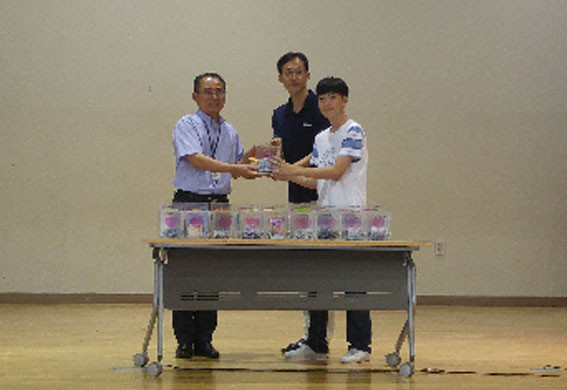 ¸ðµç ÇÁ·Î±×·¥À» ¼ºÈ²¸®¿¡ ¸¶Ä£ ÈÄ, »çÀü¿¡ ¹èÆ÷ÇÑ »ç¶ûÀÇ Àú±ÝÅëÀ» Àü´ÞÇÏ´Â ½Ã°£À» °¡Á³´Ù. À̳¯ ÅÁÁ¤ÃʵîÇб³´Â Ãæ³² À¯ÀÏÀÇ ÈÙü¾îÀå¾ÖÀγ󱸴ÜÀÎ ¡®¾Æ»êÈÙ½ºÆÄ¿ö³ó±¸´Ü¡¯À» À§ÇØ 6¿ù ¸»ºÎÅÍ 7¿ù Áß¼ø±îÁö ÃÑ 3ÁÖ°£ 3, 4, 6Çгâ Çлý 640¿©¸íÀÌ ¸ðÀº ÈÄ¿ø±ÝÀ» ¾Æ»ê½ÃÀå¾ÖÀκ¹Áö°ü¿¡ Àü´ÞÇß´Ù.