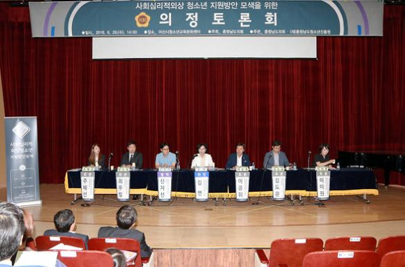 Ãæ³²µµÀÇȸ´Â 6¿ù 29ÀÏ ¾Æ»ê½Ãû¼Ò³â¹®È±³À°¼¾ÅÍ¿¡¼ ¡®»çȸ ½É¸®Àû ¿Ü»ó û¼Ò³â Áö¿ø ¹æ¾È ¸ð»ö¡¯À» ÁÖÁ¦·Î ÇÑ ÀÇÁ¤Åä·Ðȸ¸¦ °³ÃÖÇß´Ù°í ¹àÇû´Ù.