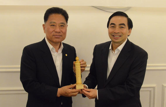 ¾Æ»ê½ÃÀÇȸ¿¡¼´Â À¯±âÁØ ÀÇÀå, ¿À¾È¿µ ºÎÀÇÀå, ¹Ú¼º¼ø ¹®±¤Æ¯À§À§¿øÀå, ȲÀ縸 ±¹Á¦ÈÃßÁøÀ§¿øÈ¸À§¿øÀÌ ´Ñºó¼º ¹æ¹®´Ü 12¸í°úÀÇ È¯¿µ¸¸ÂùÀ» ÅëÇØ ¾ç µµ½Ã ¿ìÈ£Çù·ÂÀ» ´ÙÁ³´Ù.