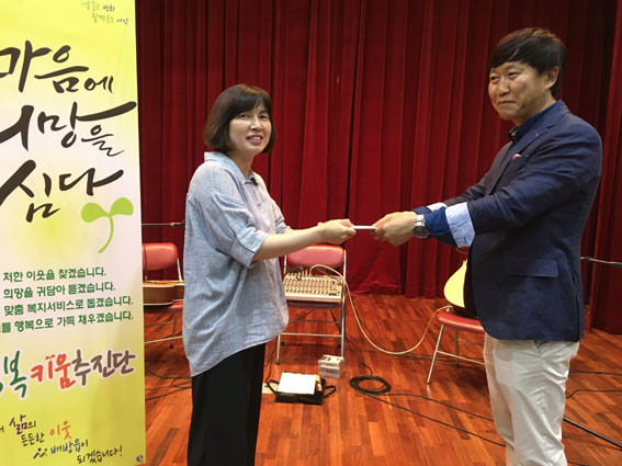¹Ú°æÈÆ ´ëÇ¥´Â ¡°¶§·Î´Â ¾Æ¸§´Ù¿î ³ë·§¸»ÀÌ ½½ÇÄÀ» À§·ÎÇØ ÁÖ´Â °Íó·³ »ýȰÀÌ ¾î·Á¿î ÀÌ¿ôµé¿¡°Ô ÀÛ°Ô³ª¸¶ µµ¿òÀÌ µÇ±æ ¹Ù¶ó¸ç, ¾ÕÀ¸·Îµµ Áö¿ª»çȸÀÇ ¾î·Á¿î ÀÌ¿ôÀ» À§ÇØ Áö¼ÓÀûÀ¸·Î µµ¿òÀ» ÁÖ°í ½Í´Ù¡±°í ¸»Çß´Ù.