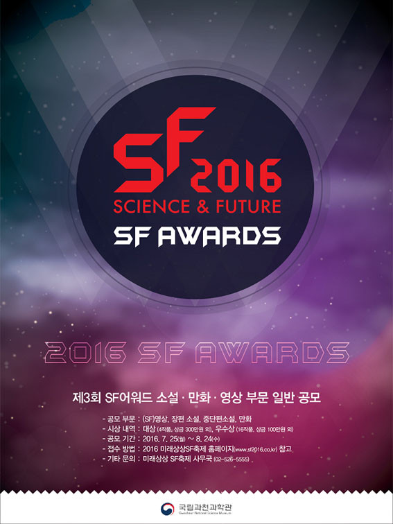 ¿ÃÇØ·Î 3ȸ°¸¦ ¸ÂÀÌÇÑ ¡®2016 SF¾î¿öµå¡¯´Â SFÄÜÅÙÃ÷ »ê¾÷ÀÇ ´ëÁßÀû È®´ë¿Í âÀÛ½ÃÀå Ȱ¼ºÈ¸¦ À§ÇØ 2014³â ½Å¼³ÇÑ ±¹³» ÃÖÃÊ SF½Ã»ó½ÄÀ¸·Î °úÇа迡¼´Â ¡®Çѱ¹ÀÇ ÈÞ°í»ó¡¯À̶õ ¾ÖĪÀ¸·Î ºÒ¸°´Ù.