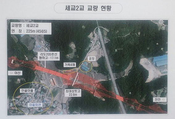 À̳¯ ÁֹεéÀº Åëdz, Á¶¸Á±Ç, ¼ÒÀ½¡¤ºÐÁø ÇÇÇØ µîÀ» ÀÌÀ¯·Î ¡ã¹è¹æ´ë±³~¹è¹æÅͳΠ±¸°£ Áß ´çÃÊ ¼ºÅä·Î ¼³°èµÈ 880m±¸°£(¹è¹æ¶ã) ±³·® ¼³Ä¡ ¡ã±³·®À¸·Î ¼³Ä¡µÅ ¾È°ñ¸¶À»À» °¡·ÎÁö¸£´Â ¼¼±³2±³ 225m ±¸°£¿¡ ÅͳÎÇü ¹æÀ½º® ¼³Ä¡ ¡ã¸¶À» Åë°ú ±³·®±¸°£ ¾à 90m ¿¬Àå µîÀ» ¿ä±¸Çß´Ù.