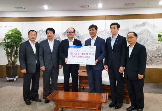 | | ¨Ï ¿Â¾ç½Å¹® | | Ãæ³²µµ´Â 9¿ù 1ÀÏ µµÃ» Á¢°ß½Ç¿¡¼ NH³óÇùÀºÇà Ãæ³²¿µ¾÷º»ºÎ·ÎºÎÅÍ Á¦97ȸ Àü±¹Ã¼À°´ëȸ ¼º°ø °³ÃÖ ÈÄ¿ø±Ý 1¾ï 2õ¸¸ ¿øÀ» Àü´Þ¹Þ¾Ò´Ù.
