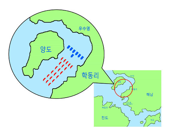 ÀÓ¿øºó ¼ÒÀåÀº ¡°ÀÌÁ¦±îÁö ¸í·®ÇØÀü Àå¼Ò´Â ÇöÀç Áøµµ´ë±³°¡ ³õ¿© ÀÖ´Â ¡®¸í·®ÀÇ ¹°¸ñ¡¯(Áöµµ1)À¸·Î ³Î¸® ¾Ë·ÁÁ³Áö¸¸ À̼ø½ÅÀÇ ¡®³ÁßÀϱ⡯ ±â·ÏÀ» Åä´ë·Î ÃßÁ¤ÇØ º¸¸é ¾çµµ(åÏÓö)¿Í ¹®³»¸é Çе¿¸® »çÀÌÀÇ Á¼Àº ÇØÇù(Áöµµ»çÁø 3)ÀÏ °¡´É¼ºÀÌ Å©´Ù¡±´Â ÁÖÀåÀÌ´Ù.