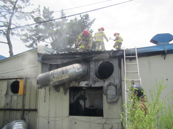 ÃÖÃÊ ¸ñ°ÝÀÚ ÀÌ ¾¾¿¡ ÀÇÇϸé ÀÛ¾÷ÀÚ°¡ öÆÄÀÌÇÁ¸¦ Àý´ÜÇÏ´ø Áß µµÀå ºÎ½º ³»ºÎ ¹°ÀÌ ´ã±ä ºÎºÐ¿¡¼ ºÒ²ÉÀÌ ¹ß»ýÇØ ¿¬¼Ò È®´ëµÇ´Â °ÍÀ» º¸°í ¼Òȱâ·Î ÃʱâÁøÈ ½ÃµµÇß´Ù°í Áø¼úÇß´Ù.