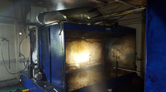 ÇöÀåÁ¶»çÇѹٿ¡ ÀÇÇϸé, ÀÚµ¿Â÷ ºÎǰ µµÀå °øÀå ³» ¾×»óµµÀå½Ç ³»ºÎ¿¡¼ ¹ß»ýÇÑ ÈÀç·Î, ¾×»óµµÀå½Ç ³»ºÎ µµÀå ºÎ½º ¾ÈÂÊ Ã¶ÆÇÀÇ º¯»öÀÌ ½ÉÇÑ Á¡, ÇöÀå ÁÖº¯¿¡ ÇÁ¶óÁ Àý´Ü±â°¡ ¹ß°ßµÇ´Â Á¡°ú »ó±â °ü°èÀÚÀÇ Áø¼ú À̿ܿ¡ ´Ù¸¥ ÈÀÎÀÌ ¹ß°ßµÇÁö ¾Ê´Â °ÍÀ¸·Î º¸¾Æ ±Ý¼Ó Àý´Ü ÀÛ¾÷ Áß ¹ß»ýÇÑ ºÒƼ°¡ ¹°°ú ½Ã³Ê ¹× ÆäÀÎÆ® Â±â°¡ ¼¯ÀΠȥÇվ׿¡ Æ¢¾î Á¡È¿øÀ¸·Î ÀÛ¿ëÇØ ¹ß»ýÇÑ ºÎÁÖÀÇ¿¡ ÀÇÇÑ ÈÀç·Î ÃßÁ¤µÈ´Ù°í ¹àÇû´Ù.
