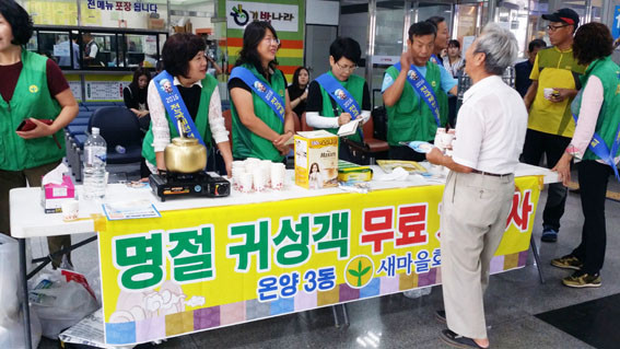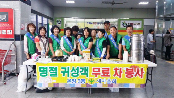 ¾Æ»ê½Ã ¿Â¾ç3µ¿ ³²¡¤¿©»õ¸¶À»ÇùÀÇȸ(ȸÀå ±è¼º¸¸¡¤ºÎ³àȸÀå À庹¿¬)´Â ÇѰ¡À§¸¦ ¸Â¾Æ 9¿ù 13ÀÏ ¾Æ»ê ½Ã¿Ü¹ö½ºÅ͹̳Π´ëÇսǿ¡¼ ±Í¼º°´ ´ë»óÀ¸·Î Â÷ ³ª´® ºÀ»çȰµ¿À» ÆîÃÆ´Ù.
