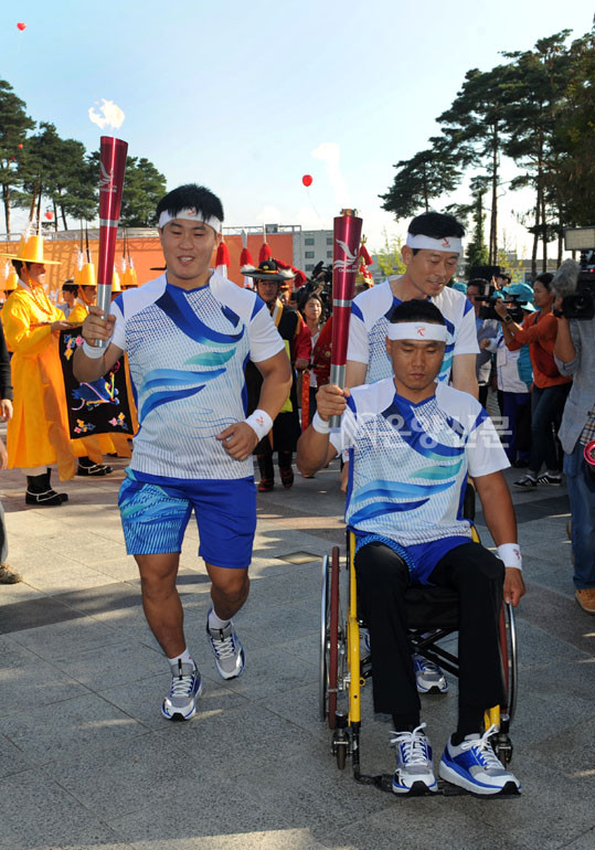 Àü±¹Ã¼Àü ¹× Àü±¹Àå¾ÖÀÎüÀü ¼ºÈ°¡ 10¿ù 3ÀÏ °Èµµ ¸¶´Ï»ê°ú ¾Æ»ê ÇöÃæ»ç¿¡¼ °¢°¢ äȵŠ¾Æ»ê½Ãû¿¡¼ ȯ¿µ¡¤Ãâ¹ß½ÄÀ» °¡Áø µÚ µµ³» ºÀ¼Û±æ¿¡ ¿Ã¶ú´Ù.
