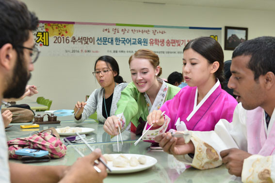 ¼±¹®´ëÇб³ Çѱ¹¾î±³À°¿ø¿¡¼´Â 85°³±¹¿¡¼ ¿Â 510¸íÀÇ À¯ÇлýµéÀÌ Çѱ¹¾î¿Í Çѱ¹¹®È¸¦ ¹è¿ì°í Àִµ¥, ±Ý¹ø Çб⿡´Â K-POP, űǵµ, µ¿¾çÈ µî¿¡ ´ëÇÑ ¿±âµµ ³ô¾Æ 8ÀϺÎÅÍ º»°ÝÀûÀÎ ¹®È¼ö¾÷À» ¹Þ°Ô µÈ´Ù.