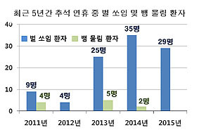 ÃÖ±Ù 5³â°£ Ãß¼® ¿¬ÈÞ Áß ¹ú ½îÀÓ 102¸í, ¹ì ¹°¸² 11¸í ¹ß»ý